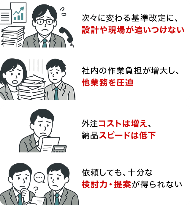 | ◎ | 変更時を想定した計算を実施、設計時の結果と変更後の結果の竣工前の忙しい時期にバタバタせずに済みます |